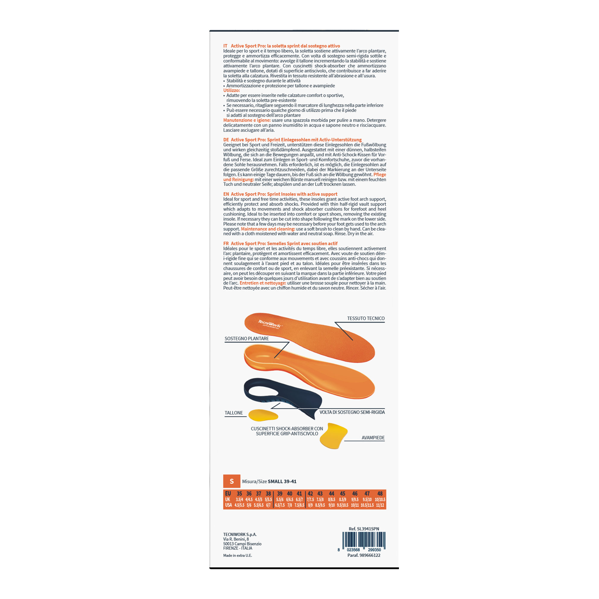 | Taglia | XS (35-38), S (39-41), M (42-43), L (44-45), XL (46-48) |